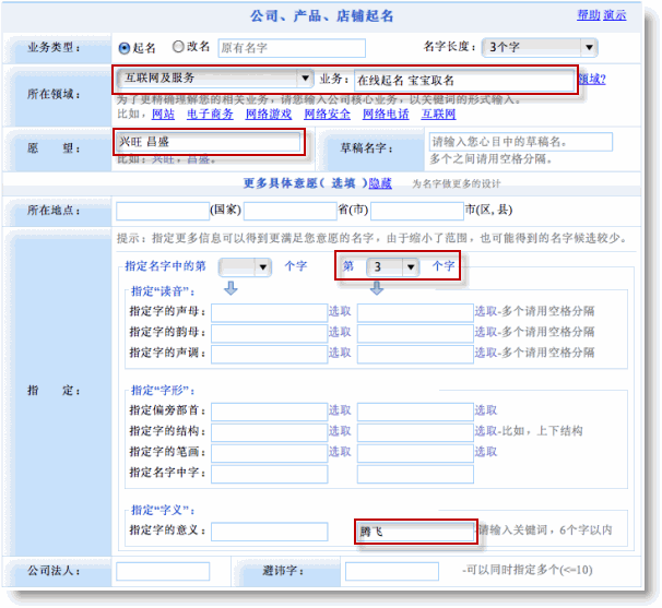 1、輸入如下所示的起名基本信息