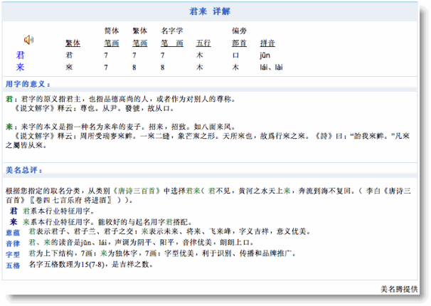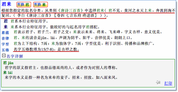 3、綜合分析輸入的起名信息,起出滿足條件的名字,如下是其中的一個(gè)候選名字