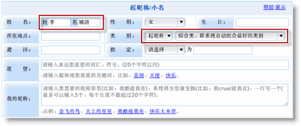 1、輸入如下所示的起名基本信息