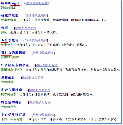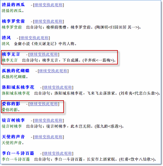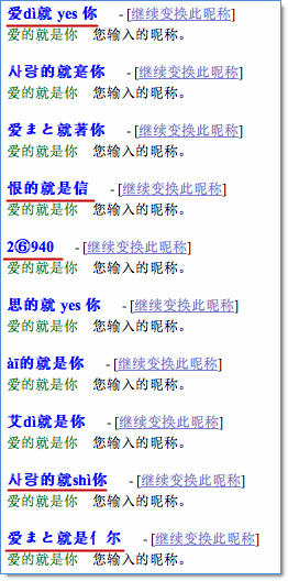 3、根據(jù)所得的昵稱,您還可以做各種個(gè)性化的變換,以得到個(gè)性十足的昵稱,如下圖所示