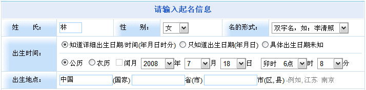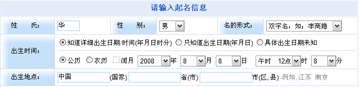 1. 在“基本起名信息”中將姓氏、出生時(shí)間填寫好。如下圖所示。