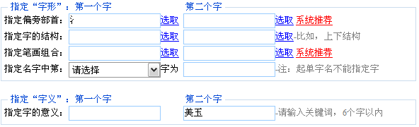 - 指定信息:通過對(duì)起名用字音、形、義等信息的指定,縮小名字用字范圍,精確獲得符合要求的名字。