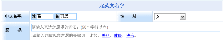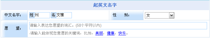• 根據(jù)用戶對英文名的期望,起出符合意愿要求的英文名。