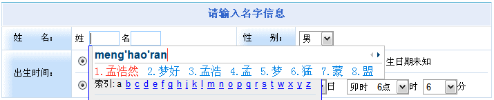 | 使用人名解析功能解析名字時,您可以在輸入姓氏時,使用輸入法將整個名字打出來,然后按空格鍵,您的姓氏和名字會自動填入到對應(yīng)的輸入框中。下圖演示了這一過程。