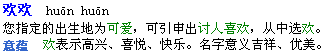 2. 點(diǎn)擊“提交”按鈕,系統(tǒng)即可為您起出符合要求的小名。以下是名字“歡歡”的解釋信息。