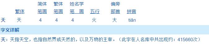 “天”在古文中就是天空的意思。而天空這是開闊、自由、潔凈的象征。許多家長(zhǎng)希望孩子的姓名中寓有如天空般美好的含義?,F(xiàn)在,讓我們和美名騰一起,看一看帶“天”字的寶寶如何起名。