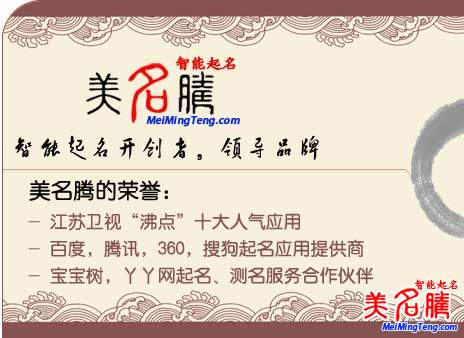 所謂五格剖象法就是根據(jù)《易經(jīng)》的“象”“數(shù)”理論,依據(jù)姓名的筆畫數(shù)和一定的規(guī)律建立起的五格數(shù)理關系,并運用陰陽五行相生相克的道理,推算人生各方面運勢的一種簡易方法。對于姓名學的內(nèi)容,要用辯證的眼光去看,給后代、子女取名時不妨參考;如果自己的姓名數(shù)理配置不理想,也沒有必要去改戶口本上的名字,可以用筆名、常用名去補救,原著上說,最常寫、常用的名字對自己人生運勢的暗示力最大。美名騰智能寶寶起名系統(tǒng)在高級選項的筆劃數(shù)推薦處,系統(tǒng)會自動推薦最好的筆劃數(shù)組合,以滿足五格要求。