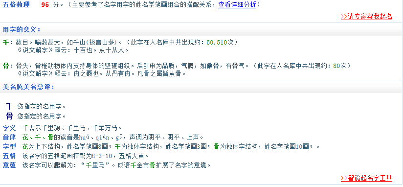 更多姓名實用工具和精彩測試:寶寶起名 專家起名 公司起名 起名大全 好聽的英文名 生辰八字 號碼吉兇測試 姓名配對 免費算命