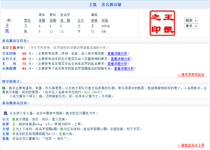 王凱,1982年8月18日生于湖北省武漢市,中國(guó)內(nèi)地男演員。下面我們從姓名學(xué)的角度簡(jiǎn)單分析一下王凱的名字,看看王凱的名字到底怎么樣?說(shuō)明:由于只知道王凱出生的年月日,具體時(shí)辰不知道,故八字分析部分僅供參考。