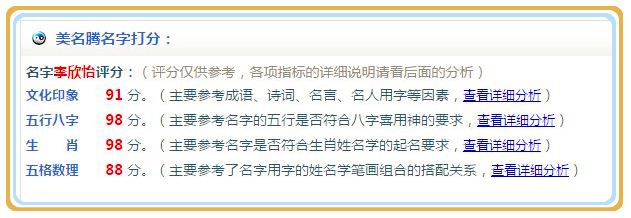 很多父母都希望給寶寶起個滿分的名字,名字的打分分別有名字的五行打分、五格打分、生肖打分和文化印象打分。