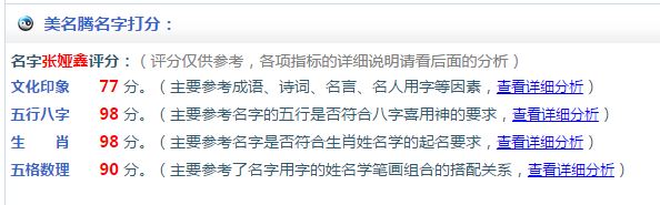 很多父母都希望給寶寶起個滿分的名字,美名騰名字的打分分別有名字的五行打分、五格打分、生肖打分和文化印象打分。