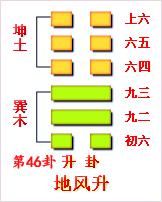 升卦坤上巽下,為震宮四世卦。升卦的意思就是上升、長進,為出暗向明,積小成大的亨達之象。