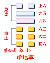 這個卦是異卦(下坤上兌)相疊。坤為地、為順;兌為澤、為水。澤泛濫淹沒大地,人眾多相互斗爭,危機必四伏,務必順天任賢,未雨綢繆,柔順而又和悅,彼此相得益彰,安居樂業(yè)。萃,聚集、團結(jié)。