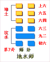 周易“周杰倫”的本卦為周易第7卦師卦(地水師),動(dòng)爻為上六爻(在從下往上數(shù)第6爻),變卦為周易第4卦蒙卦(山水蒙)(依據(jù)《周易》、《梅花易數(shù)》)。